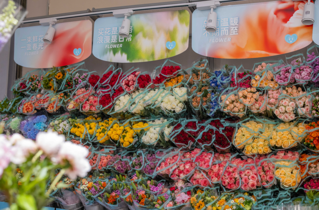 ▲ 華豫佰佳超市漯河店的鮮花區(qū)、果蔬區(qū)