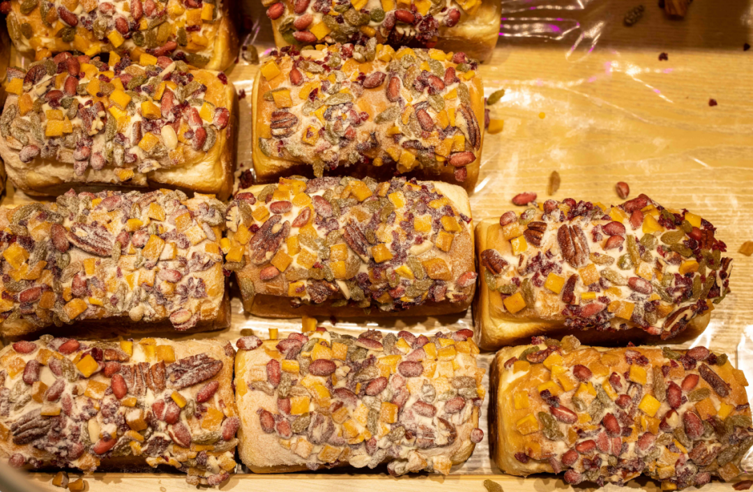▲烘焙區(qū)的甜品也是必買品。店內(nèi)現(xiàn)烤的面包,您透過(guò)透明大窗戶就能看到制作全過(guò)程,讓您更放心。