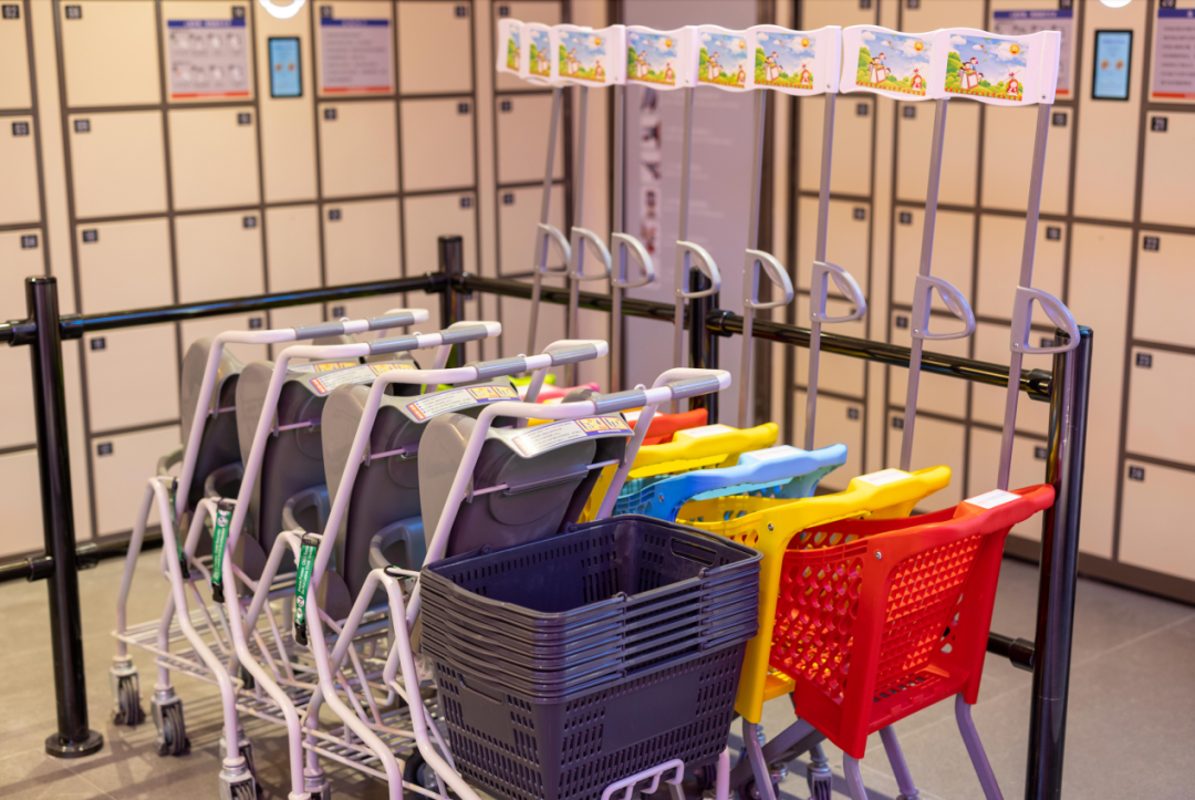 ▲購(gòu)物車有兒童和成人兩款,讓所有走進(jìn)超市的人都有參與感。
