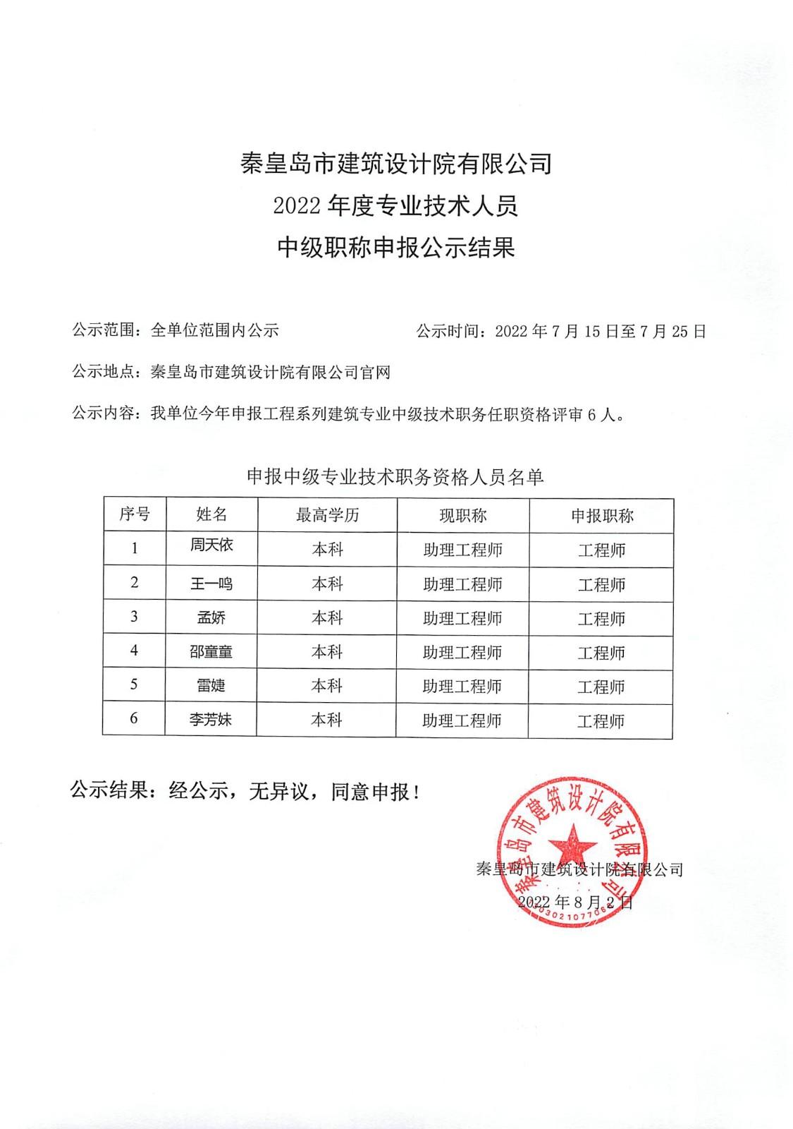 2022職稱公示結果